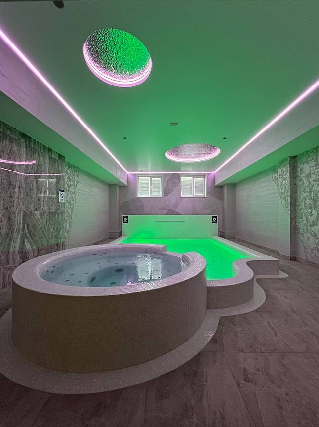 Бассейн, Размеры (Ш x Д x Г), м: 4.5 x 5.5 x 1.6, Теплый бассейн, Гидромассаж, Горки, Гейзер, Водопад, Подсветка, Детские горки,